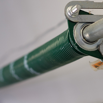 Extension Springs: These are positioned perpendicular to the door above each door’s tracks. This type of spring uses the door’s motion to extend and collect energy each time the door closes. Then, the springs release that energy by contracting when the door opens.