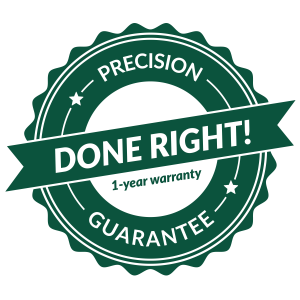 So yeah, we back every job with our industry leading Precision Done Right! Guarantee. Rest easy. We got you covered.